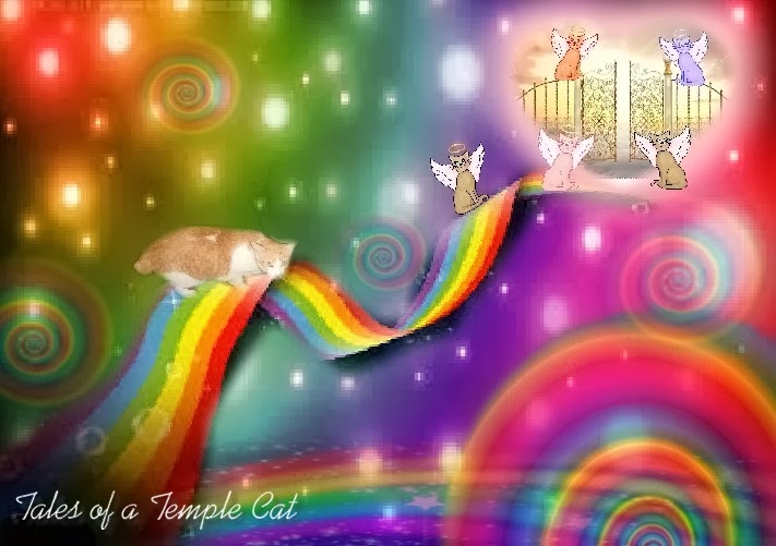 "As soon as I reached the gates, the cat angels opened them for me and ushered me in. I could see white clouds, rainbows and stars and dozens of cats floating on the clouds Then we came to a huge gold mirror and I was asked to stand before it. I wanted to ask what was happening but the words couldn't or wouldn't come out of my mouth!"